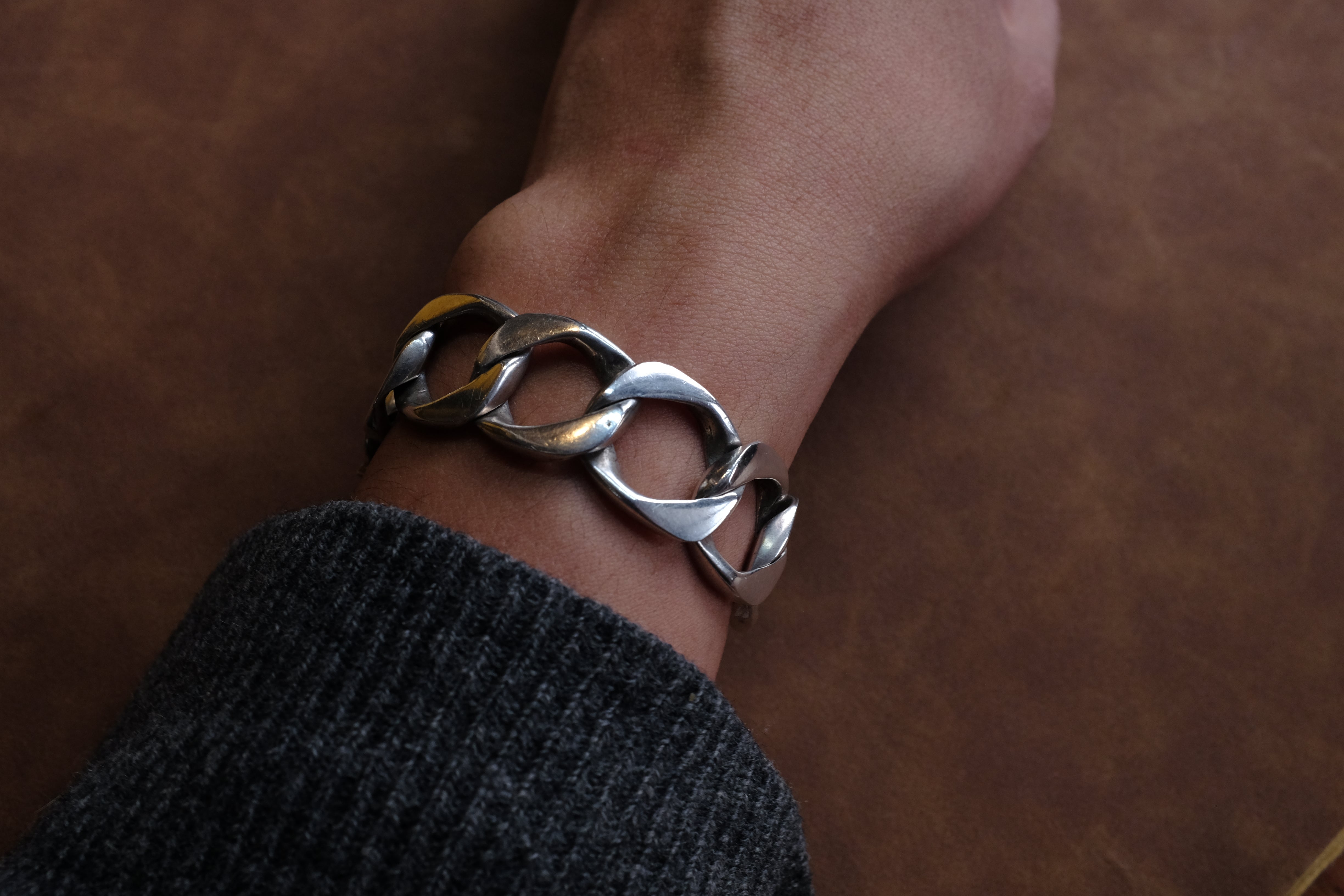 A heavy curb-link bracelet with clean lines and a timeless and heavy presence.